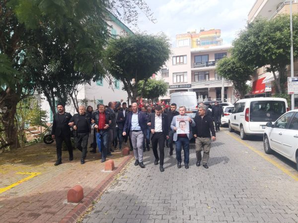 İlçe Başkanlığı önünde yapılan basın açıklamasının ardından kalabalık Atatürk anıtı önüne doğru yürüyüşe geçti.