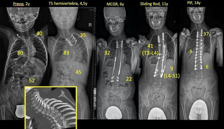"Kuzey ile ilk tanışmamız, henüz 2 yaşındayken başladı. Şiddetli bir skolyoz deformitesiyle başlayan bu uzun yolculuk, farklı zamanlarda uyguladığımız ameliyatlar ve müdahalelerle sürdü. Amacımız yalnızca eğriliği düzeltmek değil, aynı zamanda Kuzey’in büyümesini de sağlıklı bir şekilde devam ettirebilmekti.