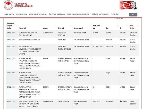 Tarım ve Orman Bakanlığı, Ramazan Bayramı öncesinde taklit-tağşiş yapılan ve sağlığı tehlikeye düşürebilecek gıdalar listesini güncelledi.Baharat, peynir ve zeytinyağında uygunsuzluklar tespit edildi. Listede at ve eşek eti olması da herkesi şaşırttı.