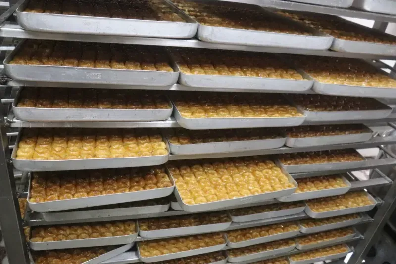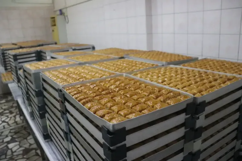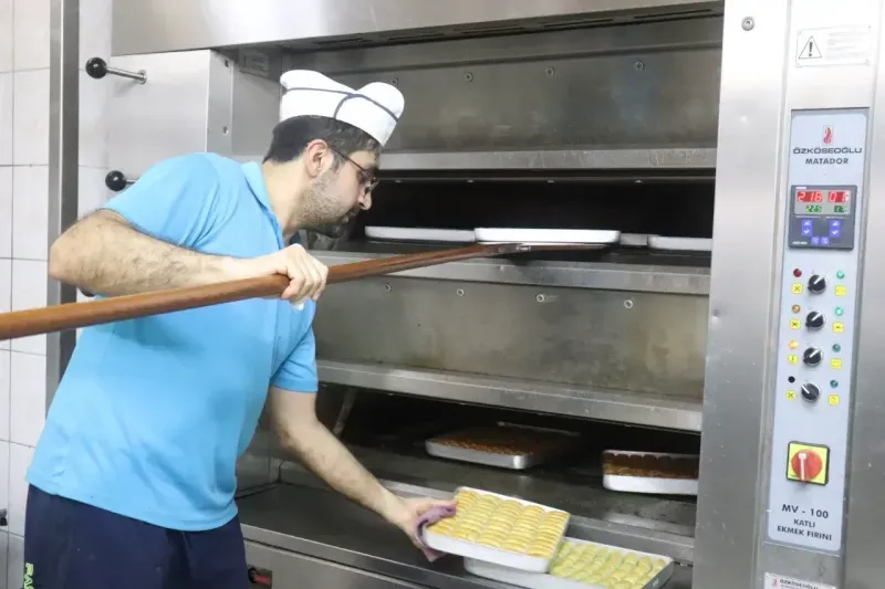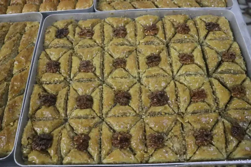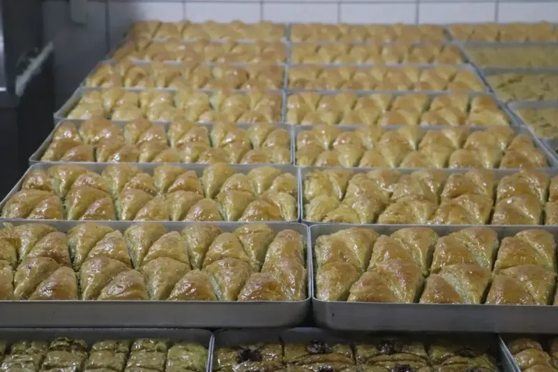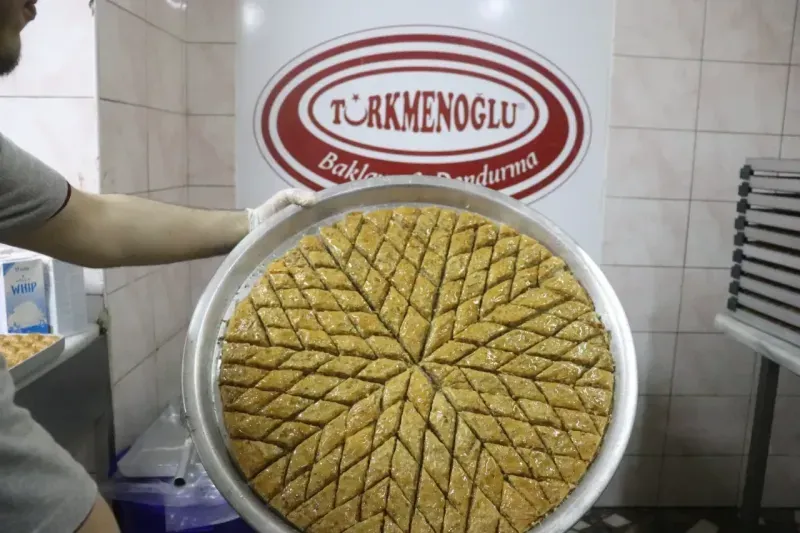 RAMAZAN Bayramı'na sayılı günler kala, bayramın vazgeçilmezi tatlılar tezgâhlarda yerini almaya başladı. Bayramda en çok tercih edilen tatlılardan biri olan baklavanın üretimi, Alanya’da bu dönemde tam kapasiteye ulaşmış durumda. Geleneksel lezzetlerin başında gelen baklava, özellikle bayramda sofraların vazgeçilmezi oluyor. Alanya’da imalathaneler, bu yılki bayram için üretimi artırırken, siparişleri karşılamak için ekstra mesai yapıyor. Bayram baklavasına olan talep her yıl olduğu gibi bu yıl da yüksek. Tatlı severler, bayram sofralarında sevdiklerine ikram edebilmek için baklava siparişlerini şimdiden vermeye başladı. Baklava ustaları, her yıl olduğu gibi özenle hazırladıkları tatlıları, taze ve kaliteli malzemelerle üretiyor. Fındıklı, cevizli ve fıstıklı gibi çeşitleriyle bayramın en gözde tatlısı olmaya aday baklava, hem tatlı severlerin hem de işletmelerin yüzünü güldürüyor.
