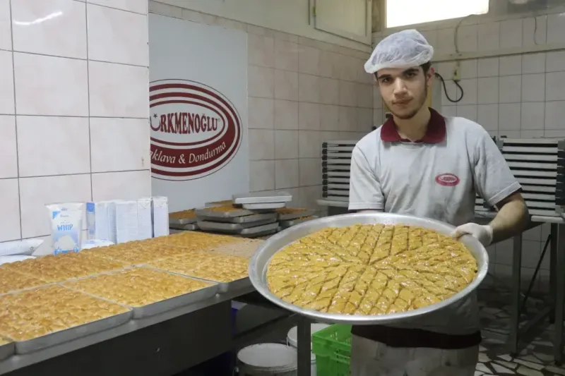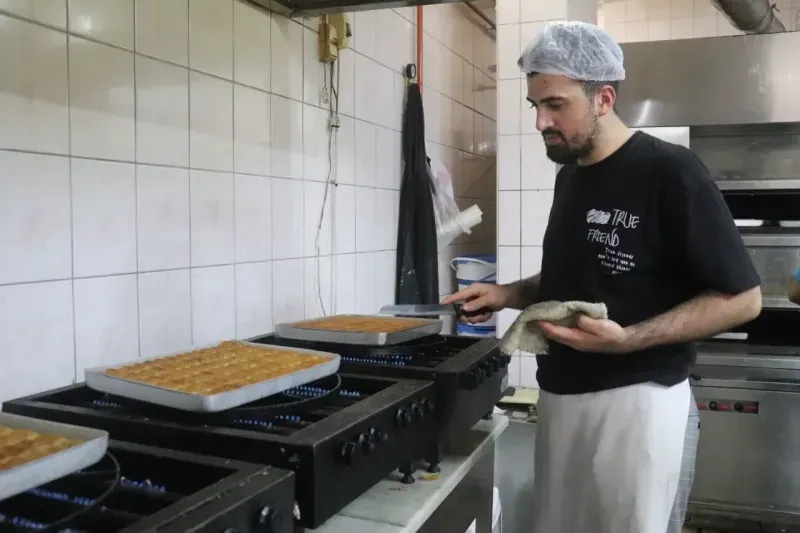 Türkmenoğlu Baklava'da usta olan Yusuf Sarı, “Alanya halkımıza, 10 kişilik ekibimizle birlikte yaklaşık 1500-2000 tepsi tatlımızı iki gündür aralıksız pişiriyoruz. Şubelerimiz Alanya'da birçok noktada mevcut. Bu iş, lezzet ve ustalıkla ilgili bir meslek. Biz de bu alanda ufak yaştan itibaren yetişiyoruz. Ustalarımız sayesinde bu lezzeti öğrenip sunuyoruz. Türkmanoğlu bir marka. Bu iş herkesin yapabileceği bir iş değil. Evde yapılan tatlılarla burada yapılan tatlının farkı, işçiliği, detayları ve özeni çok farklı” dedi.