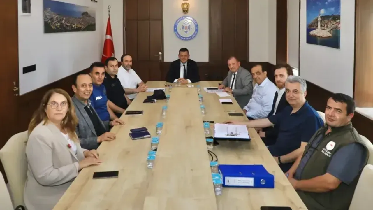 Alanya Kaymakamlığında gerçekleştirilen toplantıya Kaymakam Ürkmezer başkanlığında, Alanya Belediyesi, emniyet müdürlüğü, jandarma komutanlığı, ilçe tarım ve orman müdürlüğü, ilçe sağlık müdürlüğü, ilçe müftülüğü kurum müdürleri ve personelleri katıldı. Toplantıda Kaymakam Ürkmezer ve komisyon üyeleri, 2025 yılı için kurban satış ve kesim yerlerinin belirlenmesi, uygulanacak olası ücret tarifeleri ve bayram süresince ilgili kurumlara düşen sorumluluklar gibi konuları detaylı bir şekilde ele aldı. Yapılan değerlendirmeler sonucunda, kurban satış ve kesim noktaları belirlenerek bu alanlarda alınacak tedbir ve çalışmalar kararlaştırıldı. (Mazlume GÖKTAŞ)