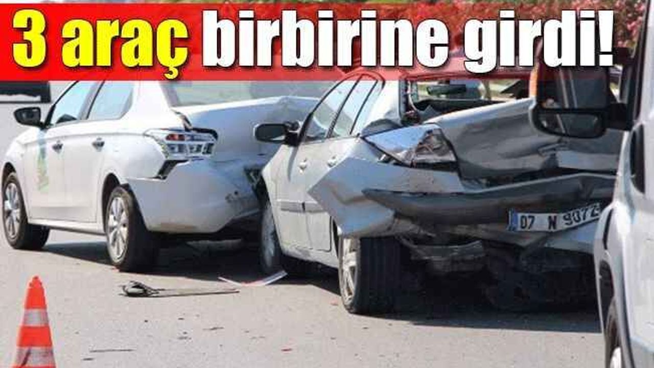 EDİNİLEN bilgiye göre, Birol Sözdiler yönetimindeki 07 DJD 95 plakalı otomobil, Hasan Hüseyin Gülen yönetimindeki 07 N 9072 plakalı otomobil ve Mehmet Ali Şen idaresindeki 07 L 9829 plakalı kamyonet Alanya’nın Türkler Mahallesi D400 karayolunda zincirleme kaza yaptı. Kazada iki araç arasında kalan 07 N 9072 plakalı otomobilin sürücüsü Hasan Hüseyin Gülen yaralandı. Gülen, olay yerine gelen sağlık ekiplerinin ilk müdahalesinin ardından ambulansla hastaneye kaldırıldı. Kazaya karışan araçlar ise polisin incelemesinin ardından olay yerinden kaldırıldı.