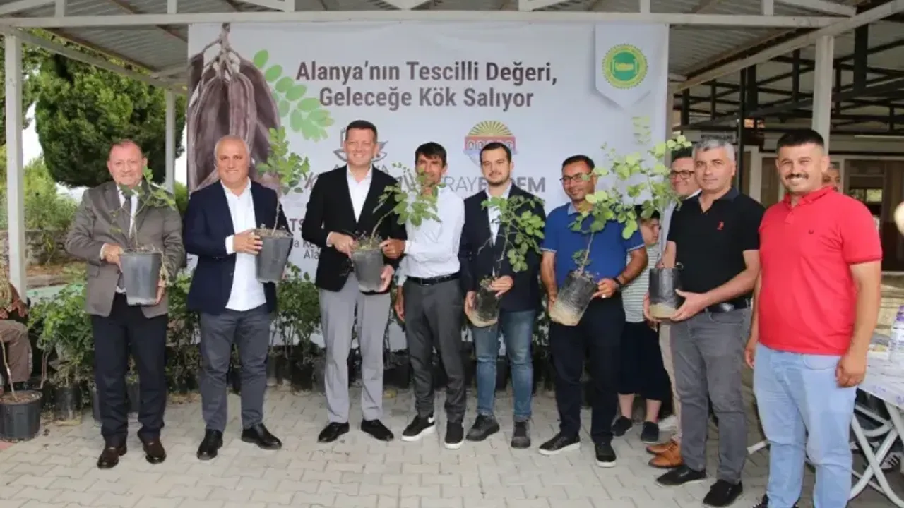 DOĞAL aroması, yüksek besin değeri ve saymakla bitmeyen faydalarıyla bilinen keçiboynuzu, artık resmen Alanya’nın tescilli bir ürünü oldu. Alanya Ticaret ve Sanayi Odası'nın girişimleriyle Türk Patent ve Marka Kurumu tarafından “Alanya Keçiboynuzu” adıyla coğrafi işaret verilen ürün, bölge tarımı adına önemli bir kazanım olacak. Tescil süreci sonrası, üretimi teşvik etmek ve yaygınlaştırmak amacıyla Saburlar Mahallesi’nde fidan dağıtım töreni düzenlendi.