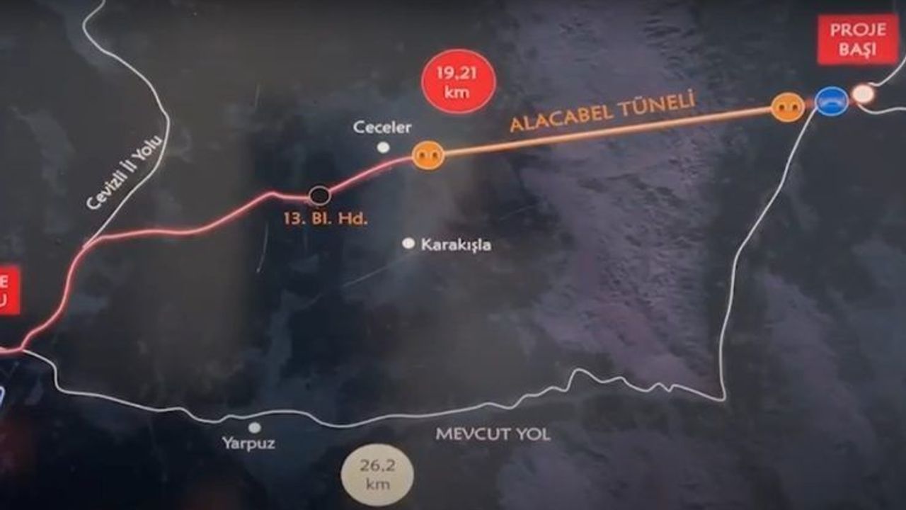 Toplam uzunluğu 15 kilometre olan çift tüplü Alacabel Tüneli’nin inşasında sona gelindi. Tünel içi beton kaplama çalışmalarının %98’i tamamlanırken, sanat yapılarının ise %85’i bitirildi. Tünelin 2025 yılı içinde hizmete açılması planlanıyor.