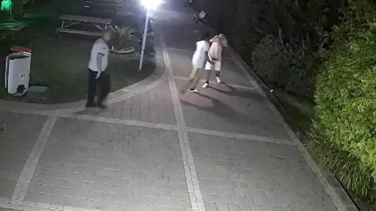 ADANA’da Hasan B., oturdukları sitenin bahçesinde oğlu M.B.'nin (11) kavga ettiği A.K.'yı (13) darbetti. Olay anı, sitenin güvenlik kamerasına yansıdı.