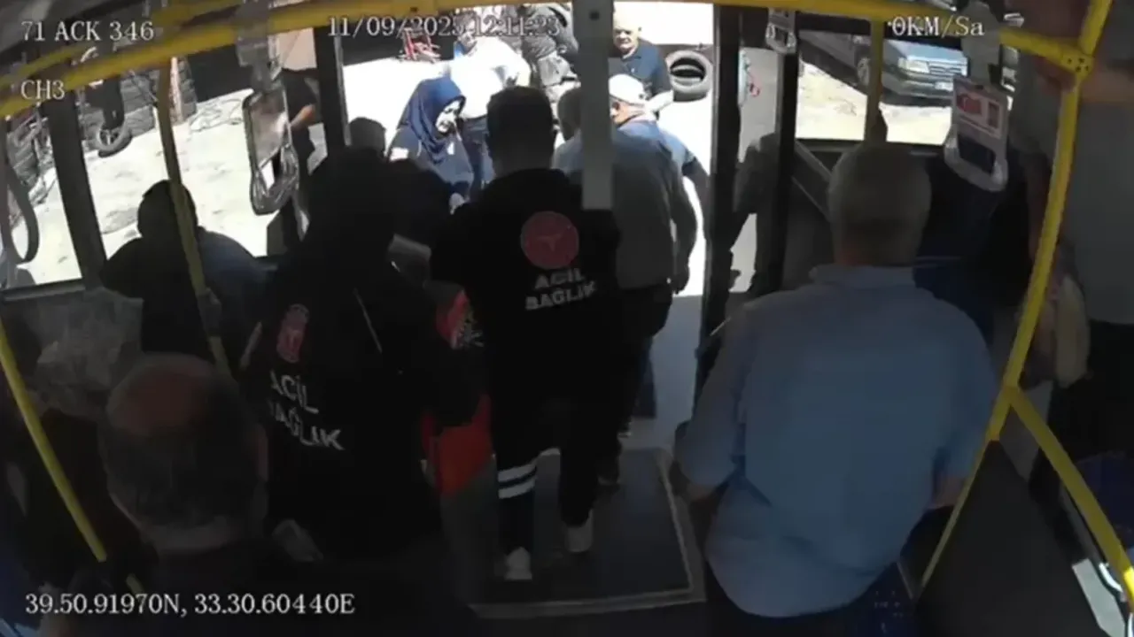 Kırıkkale Belediyesi’ne bağlı Kimeski hattında hizmet veren 71 ACK 346 plakalı halk otobüsünde yolculuk eden Perihan İme, Kimeski Mahallesi’ne doğru seyahat sırasında aniden rahatsızlandı. İme’ye ilk müdahaleyi otobüsteki yolcular yaptı. Otobüs şoförü Mehmet Ugantaş ise durumu hemen 112 Acil Çağrı Merkezi’ne bildirerek yetkililerle sürekli irtibat halinde kaldı. Kadının sağlık durumu kötüleşince, şoför güzergâhı değiştirerek en uygun noktada ambulans ekipleriyle buluştu. Perihan İme, olay yerine sevk edilen ambulansa teslim edildi. O anlar, halk otobüsünün güvenlik kamerası tarafından saniye saniye kaydedildi.
