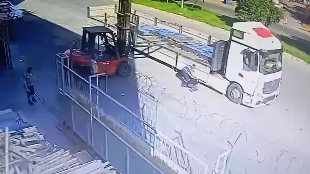 Kaza, öğle saatlerinde Seyhan ilçesi Yeşiloba Mahallesi’nde meydana geldi. İddiaya göre, sanayiden malzeme almak için bisikletiyle yolda ilerleyen Osman Kaan Şahin, tıra malzeme yüklendiği sırada park halinde duran forkliftin çatalına başını çarptı. Çarpmanın etkisiyle yere düşen Şahin yaralandı. Çevredekilerin ihbarı üzerine bölgeye sağlık ekipleri sevk edildi. İlk müdahalesi olay yerinde yapılan Şahin, ambulansla hastaneye kaldırılırken kaza anı iş yeri güvenlik kamerasına yansıdı. Şahin’in hastanedeki tedavisinin sürdüğü öğrenilirken, kazayla ilgili inceleme başlatıldı.