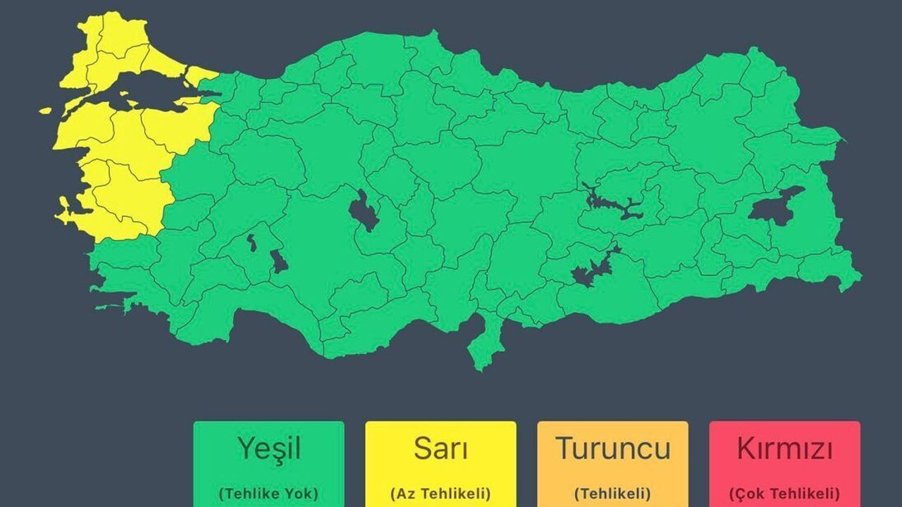 Bakanlığın sosyal medya hesabından yapılan açıklamada, "Meteoroloji Genel Müdürlüğü'nden alınan son bilgilere göre; 27 Ekim 2025 Pazartesi günü; öğle saatlerinden itibaren Trakya'da, akşam saatlerine doğru İstanbul, Çanakkale ve Balıkesir çevreleri ile zamanla Yalova ve Bursa'da kuvvetli gök gürültülü sağanak bekleniyor. Öğle saatlerinden itibaren rüzgarın güney ve güneybatı yönlerden İzmir, Manisa, Çanakkale, Balıkesir, Bursa, Edirne'nin güneyi ve Tekirdağ çevrelerinde kuvvetli ve kısa süreli fırtına şeklinde esmesi bekleniyor. Vatandaşlarımızın sel, su baskını, yıldırım, ulaşımda aksamalar, yerel dolu yağışı, yağış anında kuvvetli rüzgar ve çatı uçması gibi olumsuzluklara karşı dikkatli ve tedbirli olmasını; yetkili mercilerin uyarılarını dikkate almalarını önemle hatırlatıyoruz" denildi.