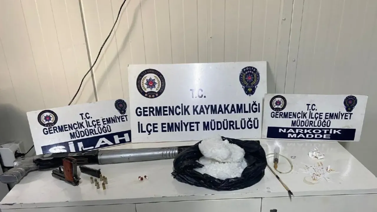 Germencik İlçe Emniyet Müdürlüğü ekipleri, uyuşturucu madde kullanımı ve ticaretinin önlenmesine yönelik çalışmalar kapsamında Reisköy Mahallesi’nde şüphe üzerine M.Y. isimli kişiyi durdurdu. Şüphelinin bu sırada yere attığı kağıt parçasını inceleyen ekipler, içerisinde uyuşturucu madde olduğunu tespit etti. Bunun üzerine M.Y.’nin ikametinde arama yapan polis ekipleri; 2 kilo 60 gram metamfetamin olduğu değerlendirilen uyuşturucu madde, 3 adet uyuşturucu hap, içerisinde sıvı madde bulunan 1 şırınga, pH ölçümünde kullanılan test kağıtları ile 1 adet uzun namlulu silah ele geçirdi.