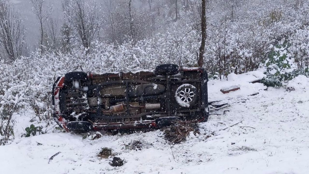 İlker Göl (36) yönetimindeki kamyonet, karla kaplı yolda karşı yönden gelen bir araca yol vermek amacıyla manevra yaptığı sırada sürücüsünün kontrolünden çıkarak, şarampole yuvarlandı. Çevredekilerin ihbarı üzerine bölgeye sağlık ve jandarma ekipleri sevk edildi.
