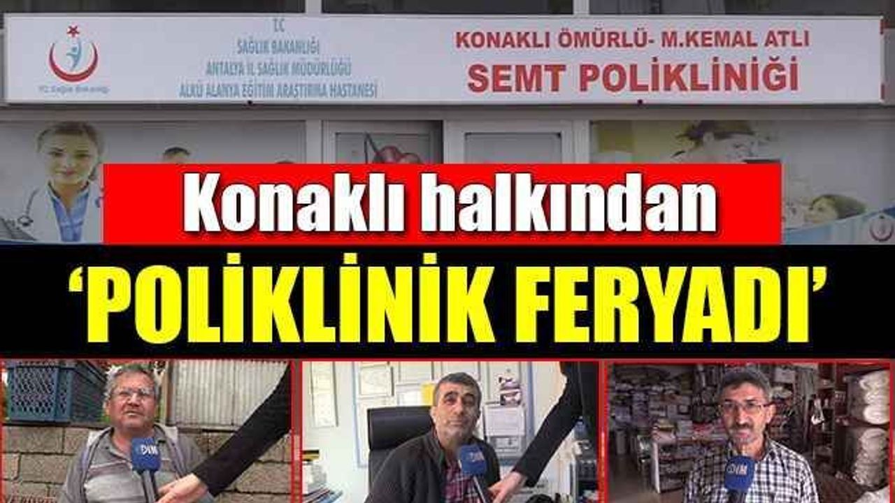 MEVCUT doktorun sadece raporlu ilaçlar yazdığını, çeşitli branşlarda doktor olmamasının kendilerini zor durumda bıraktığını ifade eden Konaklı sakinleri, Dışişleri Bakanı Mevlüt Çavuşoğlu’nun “Batı Alanya’ya 500 yataklı hastane” vaadini de anımsatarak “Bir hastane yapılana kadar bu polikliniğin bizi idare etmesi mümkün değil.” diyor. İşte bölge halkının dilinden Ömürlü M. Kemal Atlı Semt Polikliniği’nin ahvali: