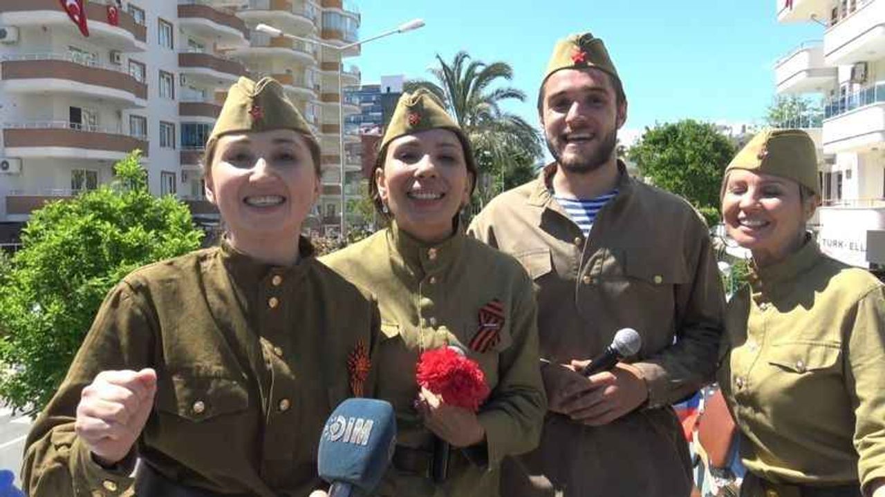 Zaferin günü olan 9 Mayıs Alanya'da da kutlandı. Coronavirüs önlemleri kapsamında geçtiğimiz yıllarda olduğu gibi geniş katılımlı yürüyüşler gerçekleştirilemese de insanlar evlerinde kaldı, Rus Kültür Derneği de bayram coşkusunu Alanya sokaklarına taşıdı. Alanya merkezden kalkan araçla birlikte marşlarını söyleyen Ruslar önce Tosmur, ardından ise Kestel'e gittiler. Aracın son durağı ise Rus yurttaşların yoğun olarak yaşadıkları Mahmutlar Mahallesi oldu. Marşlarla bayram coşkusunu sokaklara taşıyan Rus Kültür Derneği'ne Rus yurttaşlar balkonlarından eşlik etti. Oldukça renkli görüntüler oluştu. Rus Kültür Derneği Başkanı Ekaterina Gündüz Dim TV mikrofonlarına yaptığı özel açıklamada 9 Mayıs Zafer Bayramı'nı kutladı ve organizasyonda emeği geçen herkese teşekkürlerini sundu. Öte yandan savaşta hayatını kaybeden milyonları