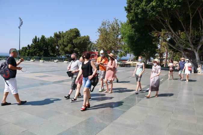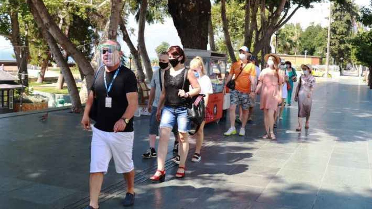 Yeni tip korona virüste ( Covid-19) 1 Haziran’da başlayan normalleşme sürecinin ardından seyahat yasaklarının kaldırılmasıyla 1 Temmuz’da Antalya’ya gelen Ukraynalı turistler, kent merkezine de inmeye başladı. Alanyalı turizmcinin hasret kaldığı manzarada 20 kişilik kafile, siperlik takan rehber eşliğinde ilk olarak gezecekleri yerler hakkında bilgi aldı. Kafileyi görenler 'Darısı Alanya'nın başına' dedi. Alanya'ya geçtiğimiz hafta ilk yurt dışı ziyaretçiler gelmişti. Dört kişilik Danimarkalı aile 5 hafta Alanya'da kalacaklarını belirtmişlerdi.