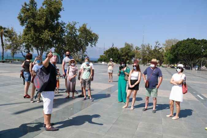 Kafilenin Ukrayna’dan geldiğini anlatan Çetin, “1 Temmuz’da Ukraynalılar gelmeye başladı. Benim kafilem Kemer’de bir otelde konaklıyorlar. Misafirlerimiz tedbirliler, her kurala uymaya çalışıyorlar. Sosyal mesafe ve maskeye dikkat ediyorlar. Memnunlar. Şu an Cumhuriyet Meydanı’ndayız, Kaleiçi’ne ineceğiz. Tekne turu yapıp geri döneceğiz. Bu ilk kafilemiz. 3 aydır kimse bırakın kafileyi bir turist bile getiremiyordu. Yerli turist bile buralara gelmiyordu. Bugün bizim için önemli bir gün” dedi.