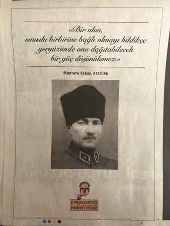 Bu ifadeler Mustafa Kemal Atatürk'e ait. İlanda Atatürk'ün fotoğrafı da yer aldı.
