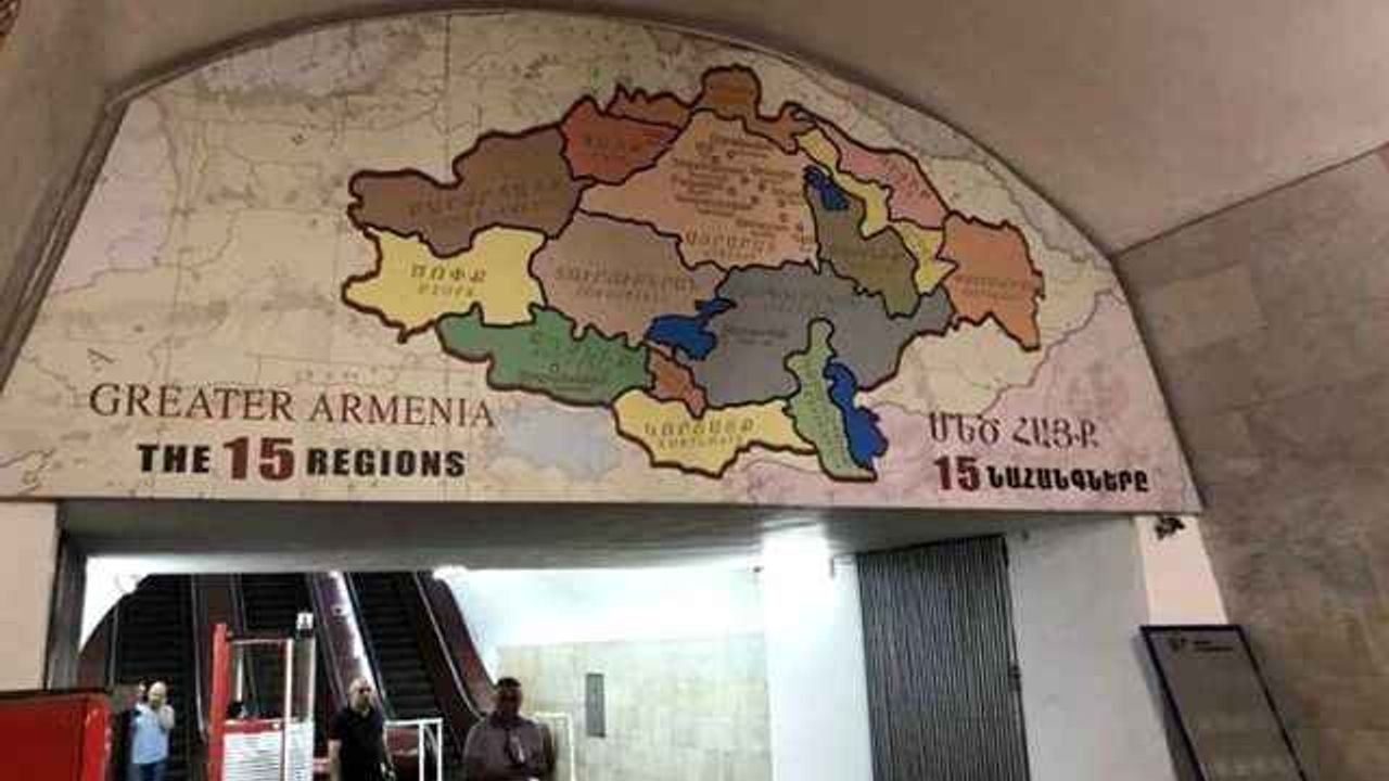 Azerbaycan'ın topraklarını işgal edip sivillere saldıran Ermenistan, cephede ağır kayıplar verdi. Ermeni askerleri ağlayarak sınırdan kaçarken, Dağlık Karabağ'da birçok bölge kurtarılırken Ermenistan'ın Türk düşmanlığı ise bitmek bilmiyor. Sadece Azerbaycan'ı değil Türkiye'nin de birçok şehrini işgal amacı güden Ermenistan'ın kirli emeli, Erivan metrosunun girişindeki sözde büyük Ermenistan haritası ile de açıkça ortaya konuldu. Metro girişindeki sözde büyük Ermenistan haritası; Doğu Anadolu, Güneydoğu ve Karadeniz'in bir kısmı ile Nahçıvan, Azerbaycan ve Hazar denizi Ermenistan toprağı olarak gösteriliyor.