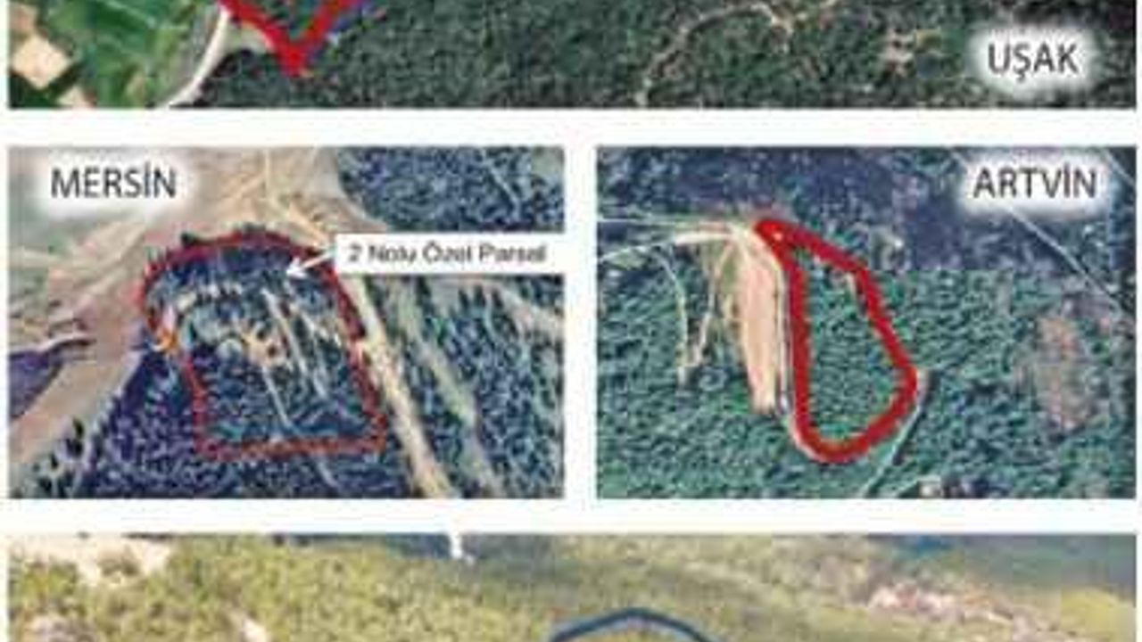 Artvin, Bursa, Mersin, Ordu, Kars, Kütahya ve Uşak'taki paha biçilmez orman alanlarını, 4- 5 yıldızlı otel ve termal tesis yapılması için ihaleye açan bakanlık 49 yıllığına özel tahsis yoluyla turizme feda edilecek orman alanlarının fotoğraflarını hazırladığı şartnamede yayımlandı.