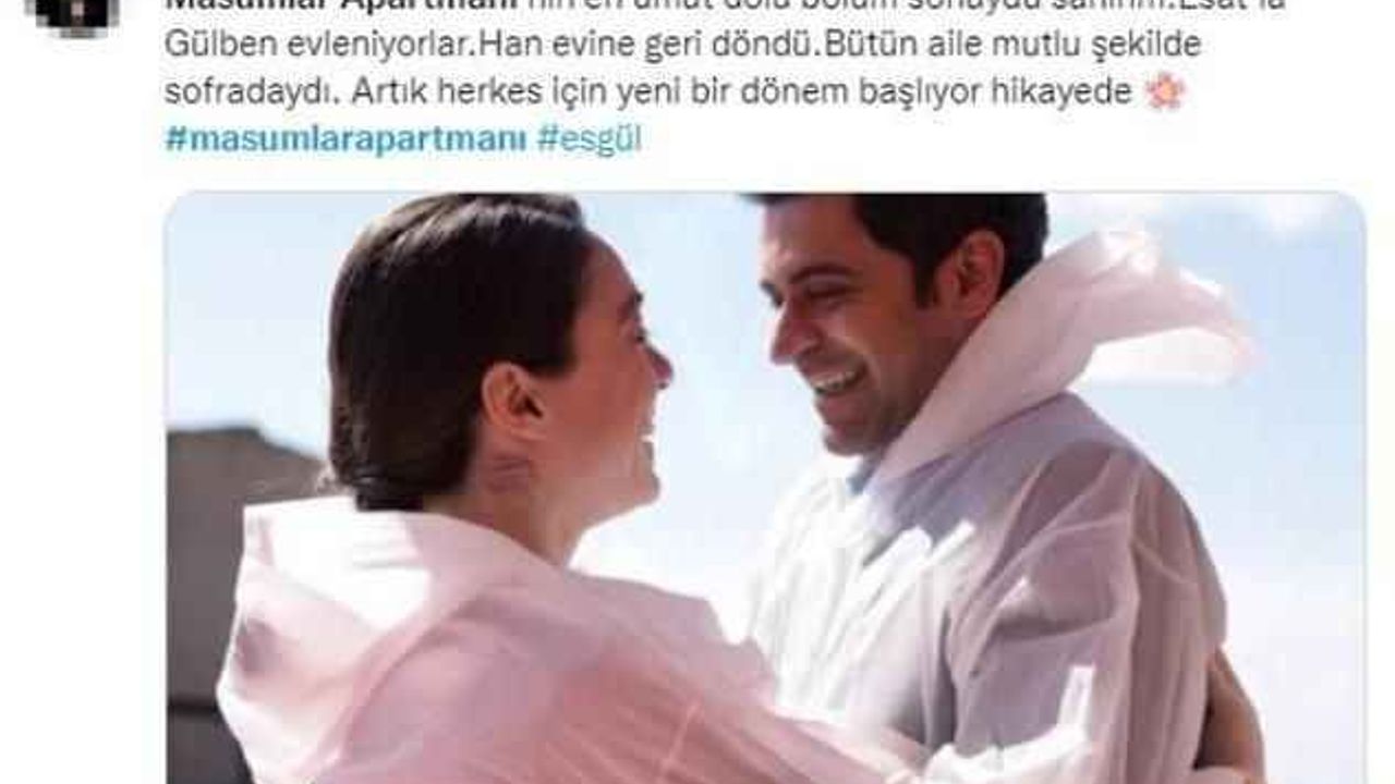 Başrollerini Ezgi Mola, Birkan Sokullu, Merve Dizdar, Melisa Şenolsun ve Tansel Öngel'in canlandırdığı Masumlar Apartmanı, dün akşam 40. bölümüyle ekrana geldi. Dr. Gülseren Budayıcıoğlu'nun kitabından uyarlanan ve gerçek bir hikayeyi anlatan Masumlar Apartmanı'nın son bölümüne Gülben ve Esat'ın evlilik kararı damga vurdu.