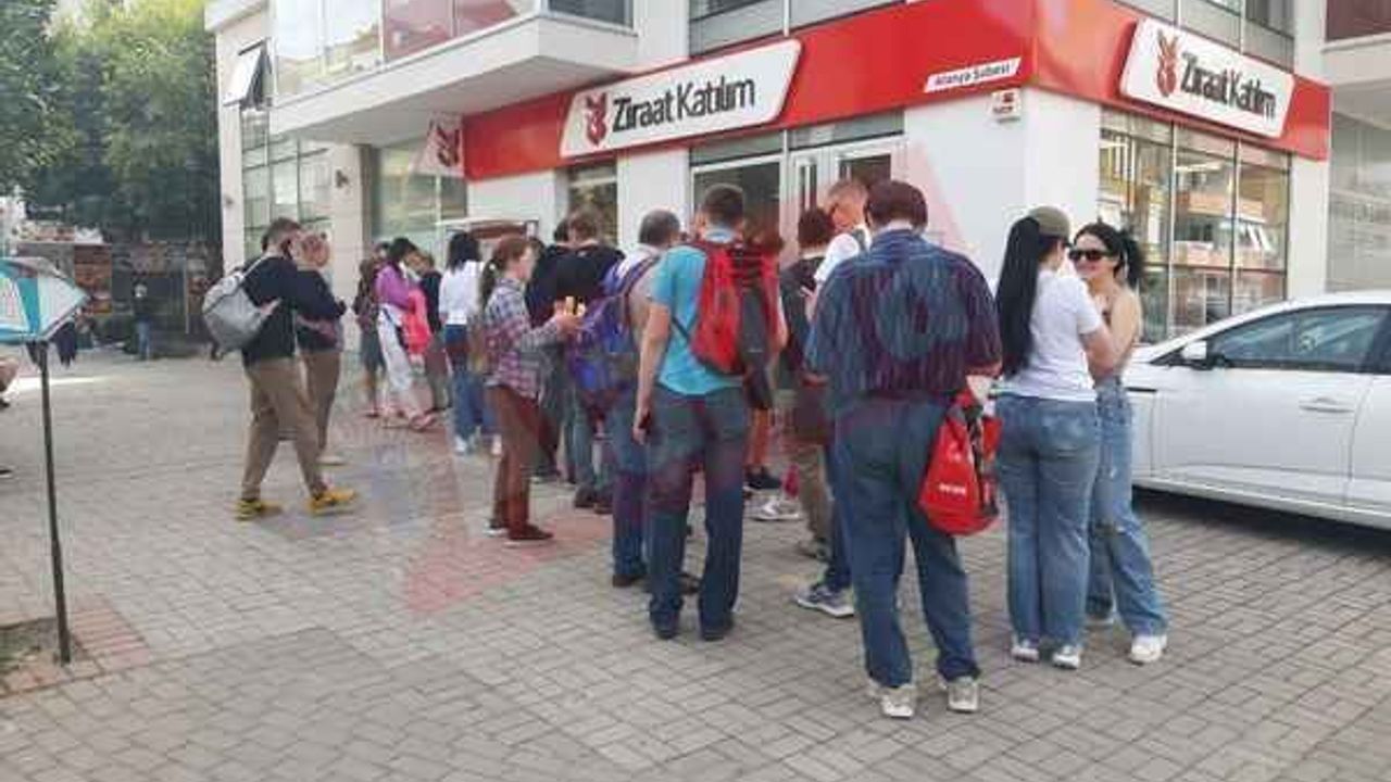 RUSYA ile Ukrayna arasındaki savaşın etkileri gün geçtikçe artmaya devam ediyor. Savaşın ardından Mahmutlar Mahallesi başta olmak üzere şehrin belli noktalarında bulunan devlet bankalarının önlerinde uzun kuyruklar oluştu. Savaşın ardından Alanya’ya sığınan Ukraynalı ve Rus vatandaşlar, para çekebilmek için uzun süre bankamatik önünde bekledi. Konu ile ilgili sosyal medya üzerinden de paylaşım yapan vatandaşlar, “Rus ve Ukraynalı vatandaşlar bankamatik önünde para çekmek için sıra bekliyor” yorumlarını yaptı.