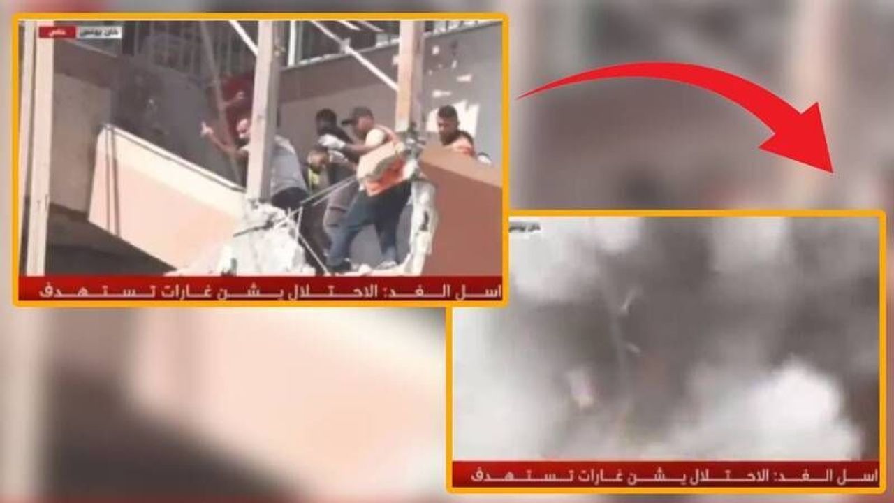 Gazze’de bombalanan hastanede çalışma yapan kurtarma ekibinin de bombalanma anı canlı yayına yansıdı.