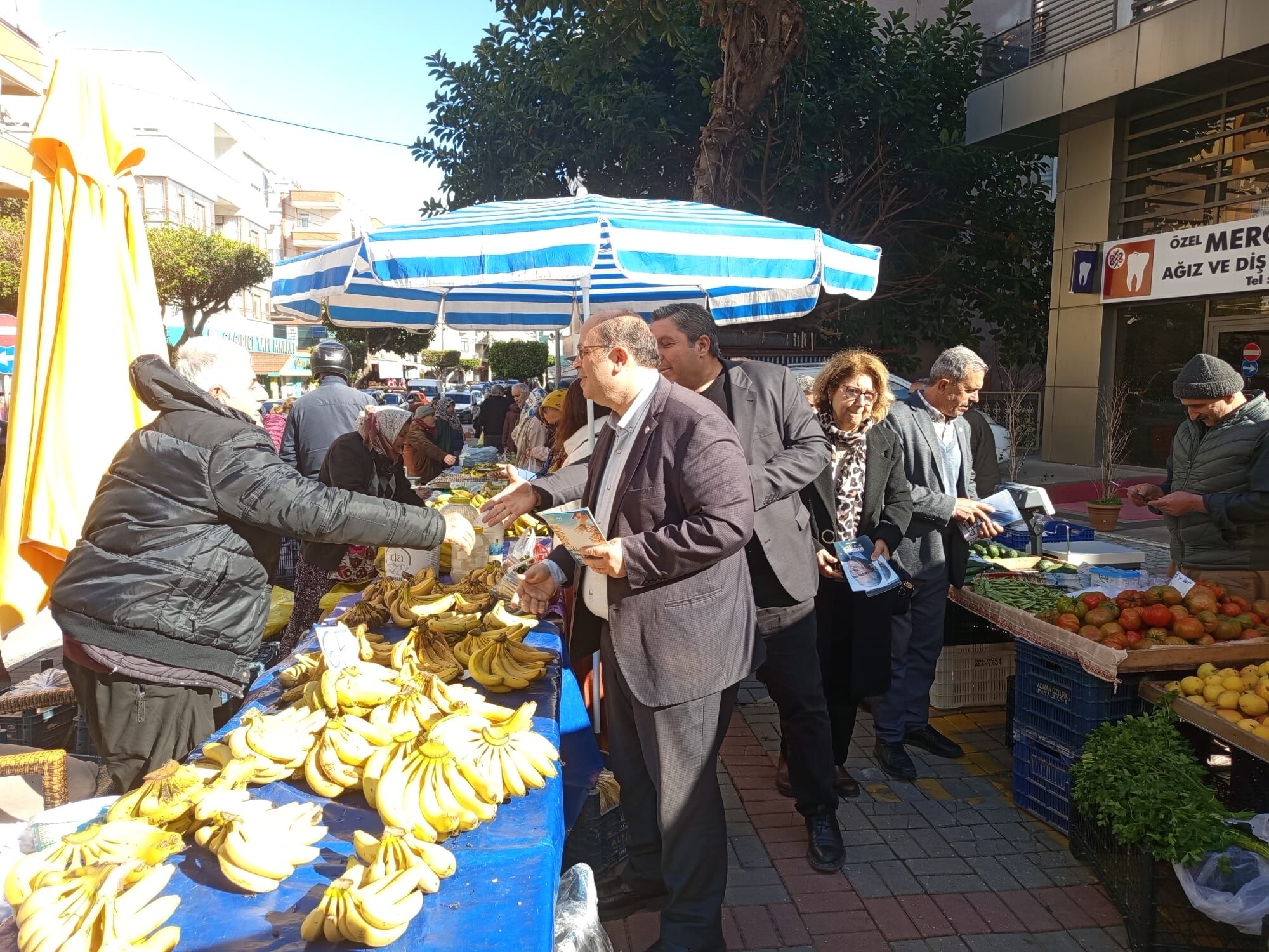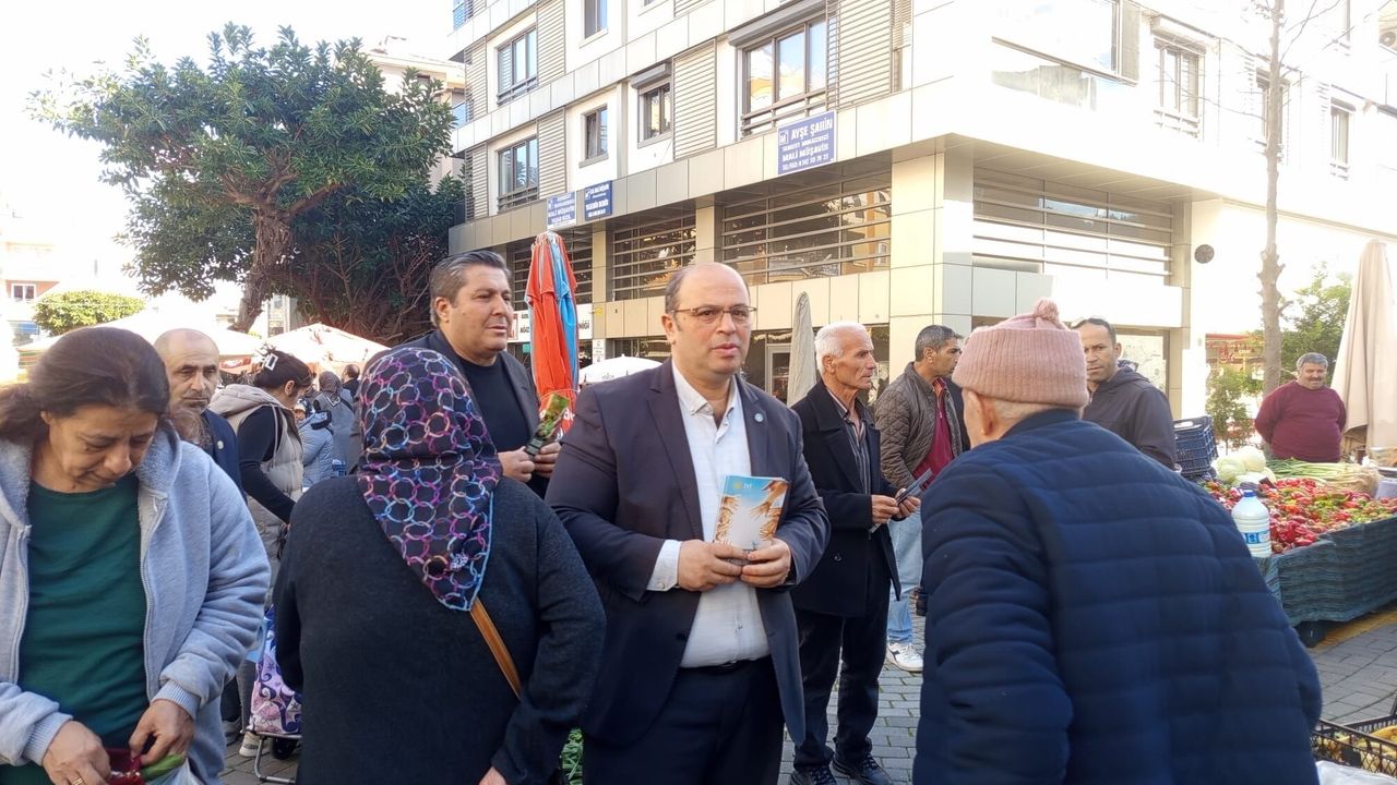 İYİ Parti Alanya İlçe Teşkilatı, saha çalışmaları kapsamında Cuma Pazarı’nda esnaf ve vatandaş ziyaretinde bulundu. İlçe Başkanı Hilmi Er ve beraberindeki parti heyeti, İYİ Parti Genel Merkezi tarafından hazırlanan "İnsanca Yaşam, Adil Devlet, Güçlü Gelecek İçin Ekonomi Politikalarımız" başlıklı broşürleri vatandaşlara ulaştırarak parti programı hakkında bilgilendirme yaptı.