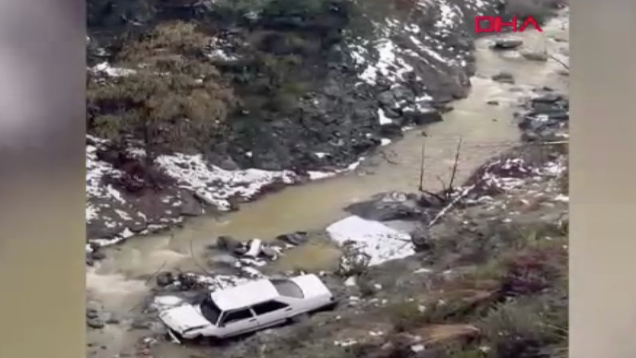 Sürücüsünün ismi öğrenilemeyen otomobil, karlı yolda kontrolden çıkarak metrelerce yükseklikten dereye uçtu. Sürücü, son anda araçtan yola atlayarak kurtuldu. Çevredekilerin ihbarıyla kaza yerine sağlık, itfaiye ve jandarma ekipleri sevk edildi. Sağlık ekipleri, yaralanan sürücüyü ilk müdahalenin ardından ambulansla hastaneye kaldırdı. Kazayla ilgili inceleme başlatıldı.