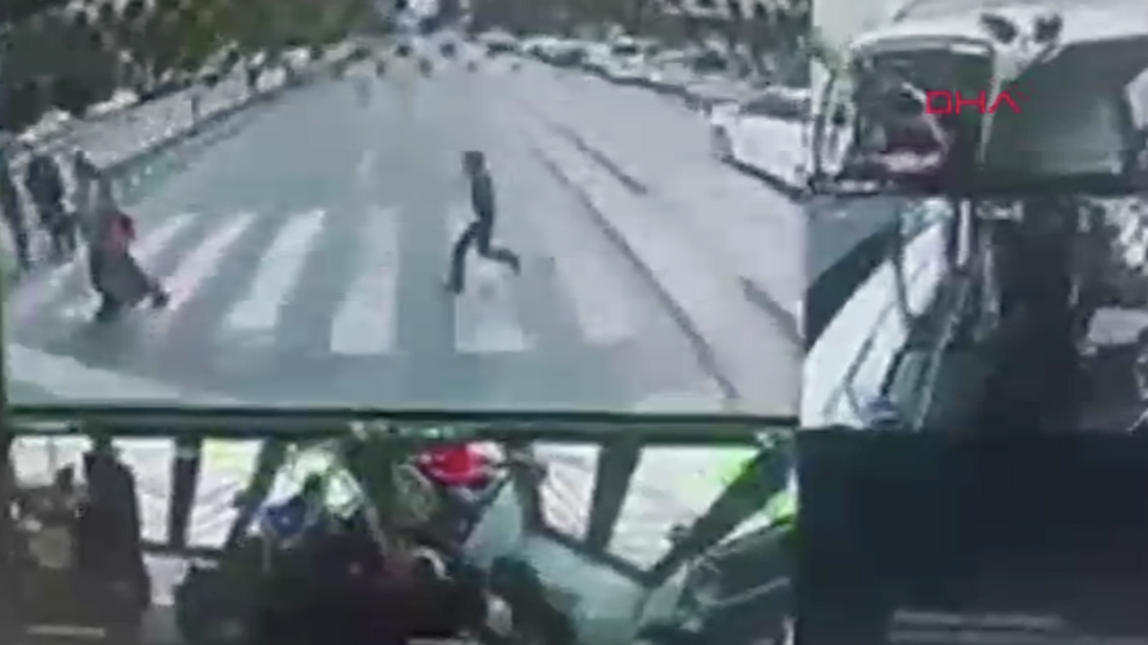 Şehir içi taşımacılığı yapan belediye otobüsü seyir halindeyken yaya geçidine yaklaştığı anda bir çocuk aniden yola fırladı. Şoförün ani freni sayesinde çocuk otobüsün altında kalmaktan son anda kurtuldu. O anlar otobüs içi kamerasına anbean yansıdı.
