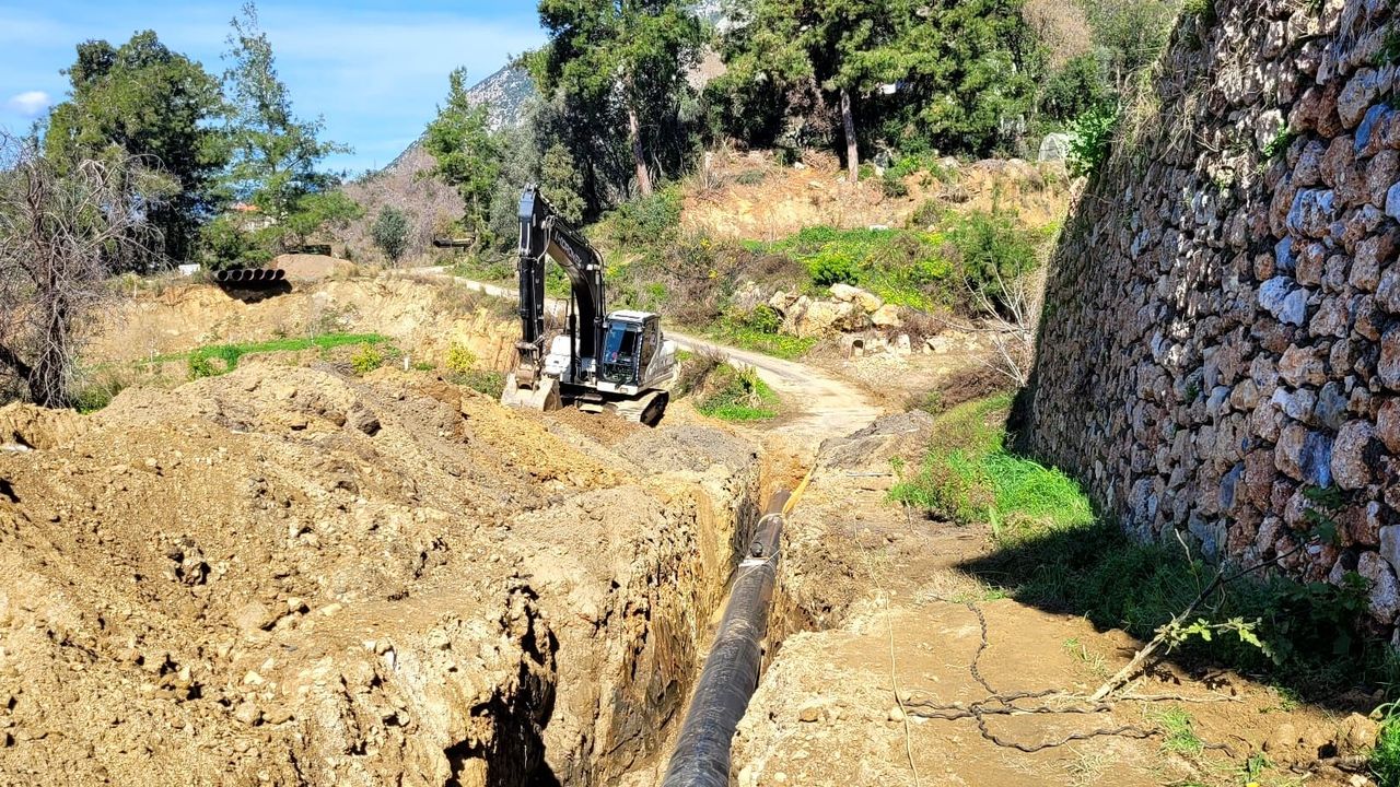 Bölge çiftçisinin üretim kapasitesini artıracak ve su sorununa kökten çözüm getirecek olan projede ekipler, Kestel ve Mahmutlar hattı üzerinde yoğunlaşmış durumda. Dev boruların toprakla buluştuğu çalışmalarda, hattın en kısa sürede tamamlanması için mesai harcanıyor.