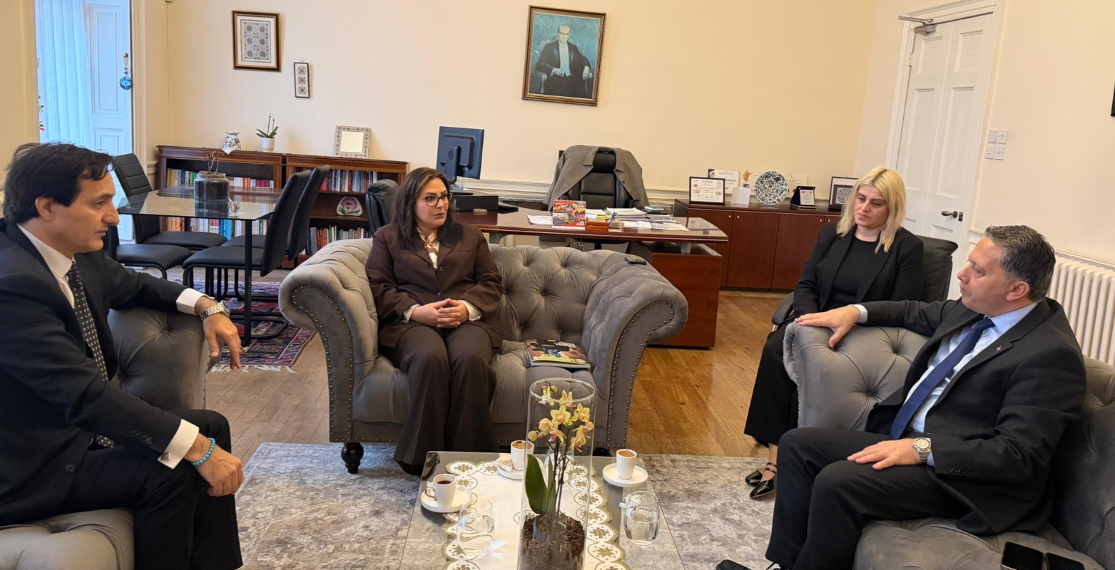 KÜRESEL Gazeteciler Konseyi (KGK) Genel Başkanı Mehmet Ali Dim, Londra’da gerçekleştirdiği temaslar çerçevesinde önemli diplomatik ve medya buluşmalarına imza attı. Dim, temas programı kapsamında Türkiye Cumhuriyeti Londra Başkonsolosu Büyükelçi Dr. Hasan Ulusoy ile Kuzey Kıbrıs Türk Cumhuriyeti Londra Büyükelçisi Aysan Mullahasan’ı ziyaret etti. Gerçekleştirilen görüşmelerde KGK’nın kamu diplomasisine yönelik yürüttüğü çalışmalar ele alınırken, uluslararası alanda medya ve iletişim alanındaki iş birliği imkânları hakkında istişarelerde bulunuldu.