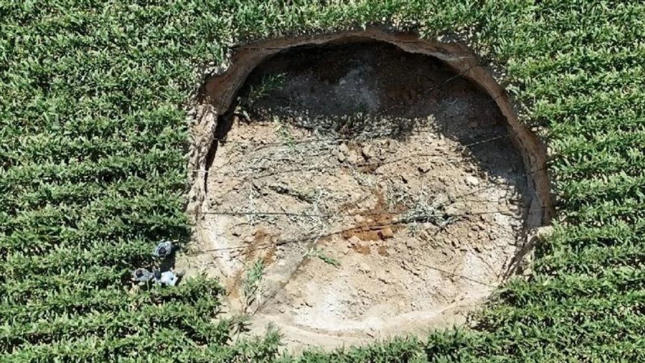 Çiftçiler tarafından fark edilen çukur, AFAD ekiplerine bildirildi.