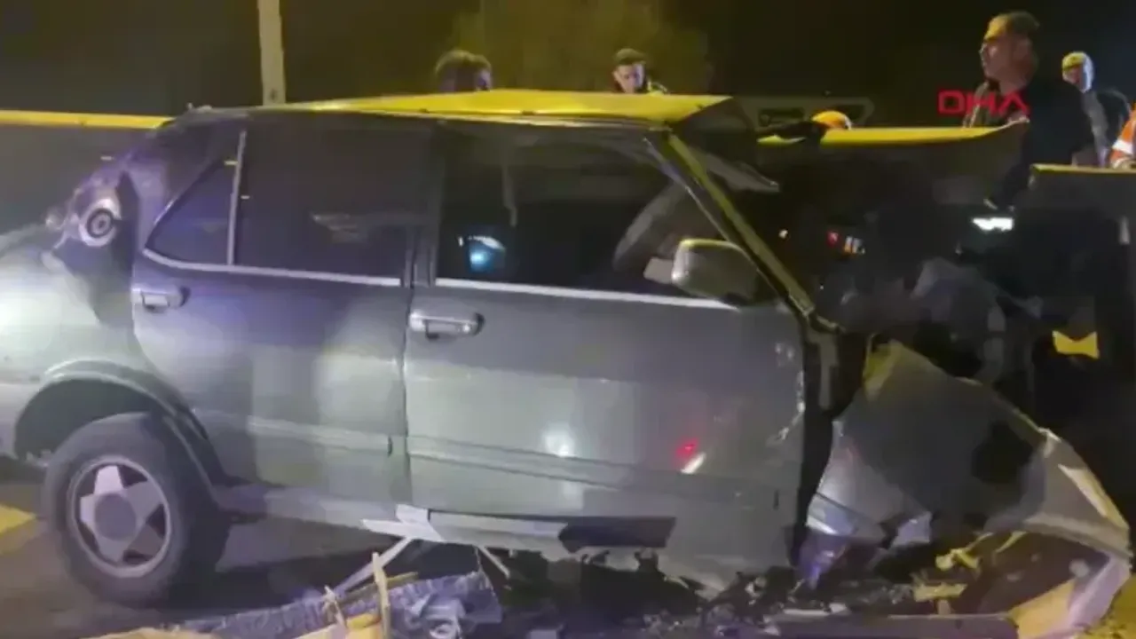 Kontrolden çıkan otomobil bariyerlere saplandı