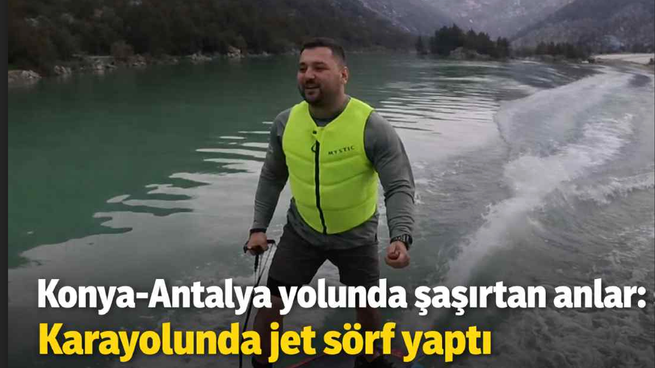 Konya-Antalya yolunda şaşırtan anlar: Karayolunda jet sörf yaptı