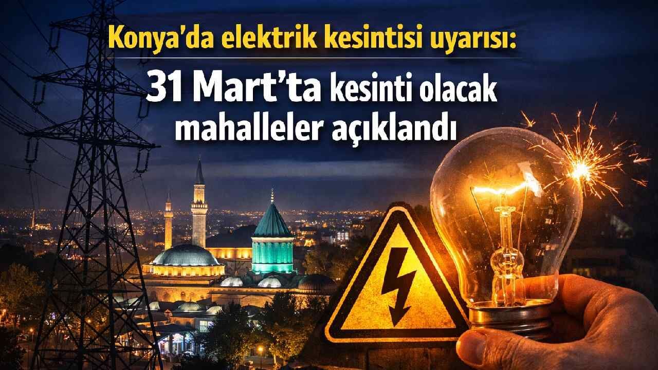 Konya’da 31 Mart Salı günü planlı elektrik kesintisi yapılacak mahalle ve sokaklar açıklandı. Sabah ve öğleden sonra farklı saatlerde kesinti uygulanacak.