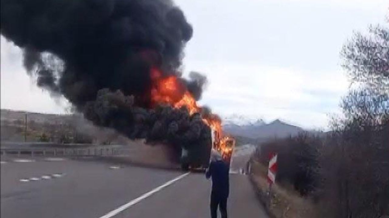 Jandarma, kara yolunu ulaşıma kapattı. Alev topuna dönen minibüsünün yanından jandarma tarafından güçlükle uzaklaştırılan sürücü Aytaç, telefonla görüştüğü 112 Acil Çağrı Merkezi'ndeki kişiye itfaiyenin henüz gelmediğini belirterek, "Arabam yanıyor. Gelmedi ablam gelmedi" dedi. Ardından başka biriyle daha telefon görüşmesi yapan Aytaç, "Arabam yandı abi, söndüremedim. Arabam yandı bitti" diye konuştu. Alevler, gelen itfaiyenin müdahalesiyle söndürülürken; minibüs kullanılmaz hale geldi.