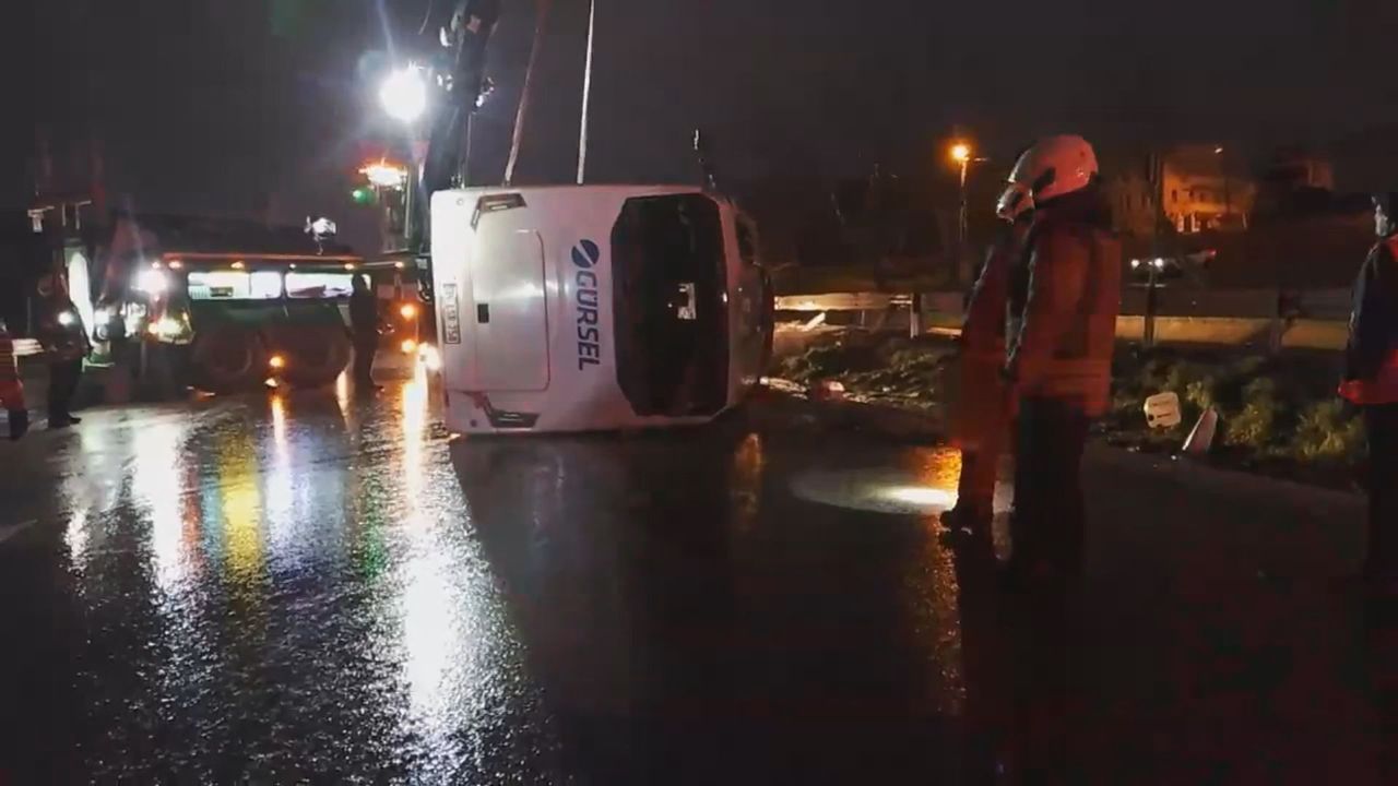 İddiaya göre, işçileri taşıyan servis midibüsü yağışlı hava nedeniyle kayganlaşan yolda şoförünün direksiyon hakimiyetini kaybetmesi sonucu devrildi. Olay yerine çok sayıda itfaiye, acil sağlık ve polis ekipleri geldi. Sağlık ekiplerinin kontrollerinde kazada Recep Berkan Hodlioğlu (26)'nun hayatını kaybettiği, 9 kişinin ise yaralandığı belirlendi. Devrilen midibüsün olay yerinden kaldırılmasının ardından, araç yoğunluğunun oluştuğu D-100 Karayolu'nda trafik akışı normale döndü. Polis ekipleri kazaya ilişkin inceleme başlattı.