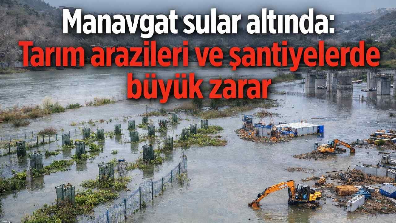 Manavgat Irmağı’nın debisi yükseldi, otoyol şantiye alanları ve tarım arazileri suya gömüldü. İş makinelerinde hasar var, üreticiler zararda.