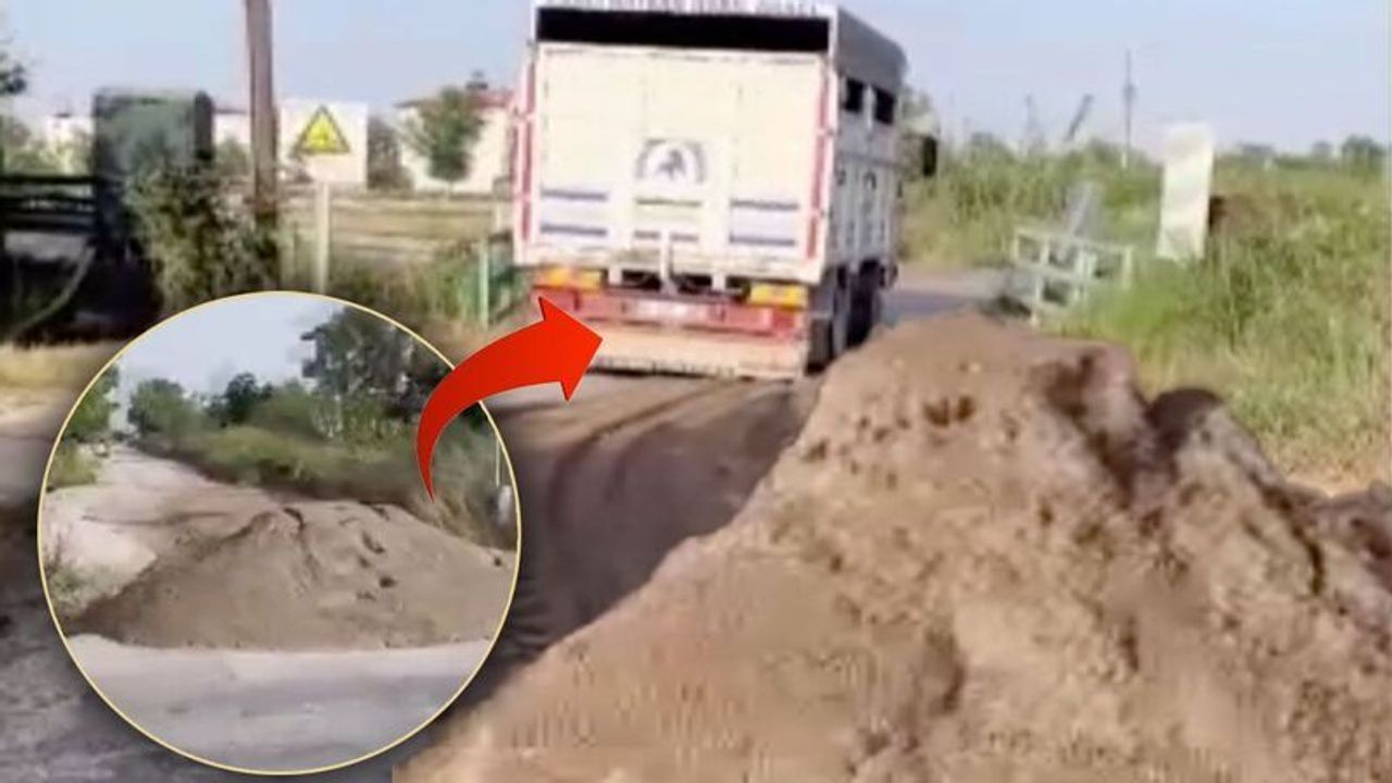 ELEKTRİK HATLARINI KOPARIP KUMU YOLA DÖKTÜLER