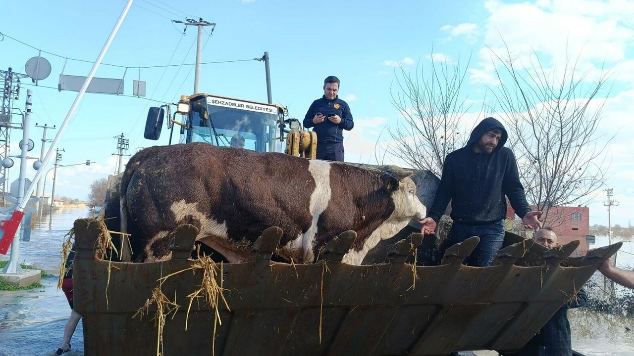 Kent genelinde etkisini sürdüren sağanak sele neden olurken, bazı bölgelerde su baskınları yaşandı. Şehzadeler ilçesi kırsal Yeni Harmandalı Mahallesi'ndeki bir çiftliği sel suları bastı. İhbar üzerine Manisa Büyükşehir Belediyesi İtfaiye Dairesi Başkanlığı ekipleri, AFAD ve İlçe Tarım ve Orman Müdürlüğü ekipleri bölgeye sevk edildi. Ekipler çevrede güvenlik önlemi alarak iş makinesiyle çiftliğe ulaştı. Kurtarma çalışmalarına mahalleli de destek verdi. Mehmet Aslan'a ait 17 büyükbaşın bir kısmı kepçeyle, bir kısmı ise ekipler tarafından sudan çıkarıldı. Bölgedeki başka bir çiftlikte mahsur kalan 10 küçükbaş da yapılan çalışmalar sonucu bulundukları yerden alınarak güvenli alana tahliye edildi. (DHA)
