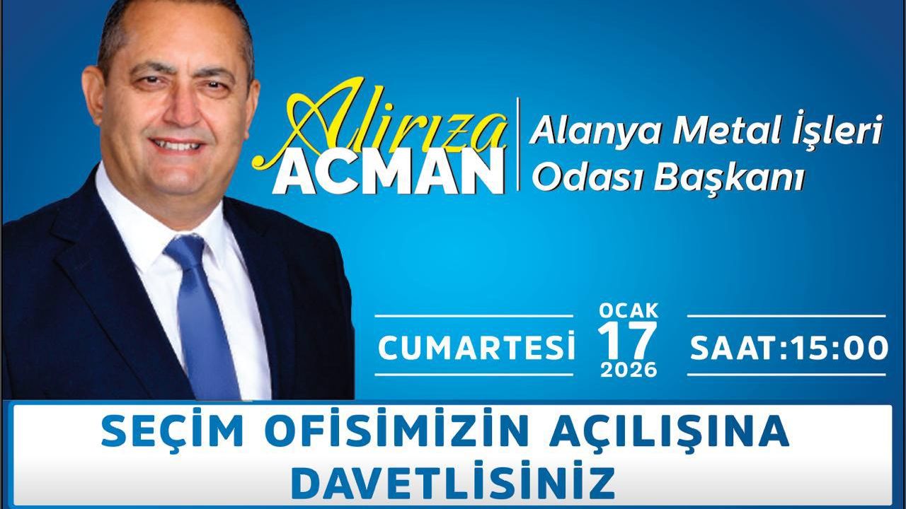 22 Ocak’ta bin 600 üyenin oy kullanacağı Alanya Metal İşleri Odasında Kerim Taç ile başkanlık için yarışacak olan Alanya Metal İşleri Odası Başkanı ve başkan adayı Ali Rıza Açman, yarın saat 15.00’da Alanya Sanayi Sitesi Denizbank yanında bulunan seçim ofisinin açılışını gerçekleştirecek. Açman, seçim ofisinin açılışına tüm vatandaşları davet etti. (Hatice NERGİZ)