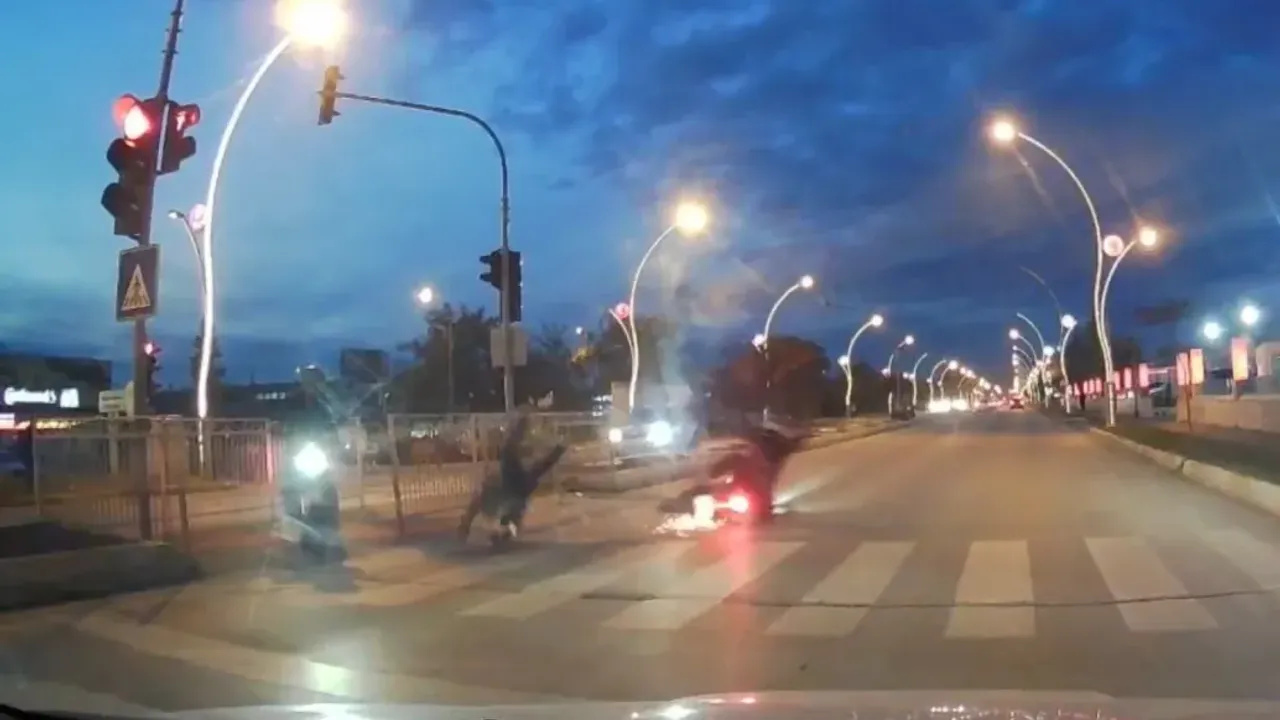 Kaza, akşam saatlerinde Atatürk Bulvarı üzerinde meydana geldi. Yayalara yeşil ışık yandığı sırada caddenin karşısına geçmek isteyen O.G.'ye, bu sırada kırmızı ışıkta durmayan Ü.B. yönetimindeki 22 AET 352 plakalı motosiklet çarptı. Çarpışmanın etkisiyle O.G. ile motosiklet sürücüsü Ü.B. yola savrularak yaralandı. İhbarla bölgeye sağlık ve polis ekipleri sevk edildi. Yaralılar, ilk müdahalelerinin ardından ambulansla hastaneye sevk edildi. Kaza anı, arkadan gelen başka bir aracın kamerasına yansıdı.