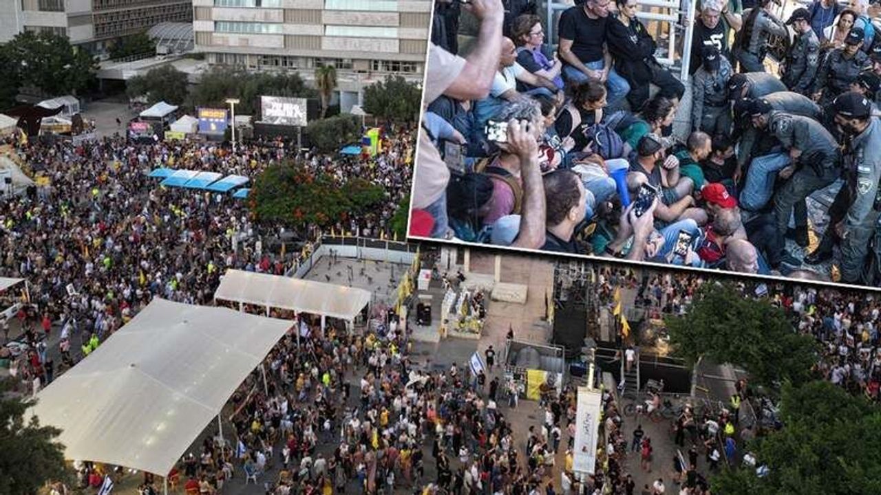 Dün akşam saatlerinde yapılan açıklamada, ülke genelinde düzenlenen eylem ve gösterilere bir milyondan fazla kişinin katıldığı belirtildi. Rehinelerin serbest bırakılması için Hamas ile müzakereleri sabote etmekle suçlanan Netanyahu, muhalefet ve rehinelerin ailelerinin tepkisini çekiyor. Hamas'ın, savaşın sona ermesi, İsrail ordusunun Gazze'den çekilmesi ve Filistinli esirlerin serbest bırakılması karşılığında İsrailli esirleri toplu halde serbest bırakmaya hazır olduğunu açıklamasına rağmen, Tel Aviv yönetiminin 20'si hayatta olmak üzere 50 İsrailli esirin Gazze'de olduğunu tahmin ettiği biliniyor.