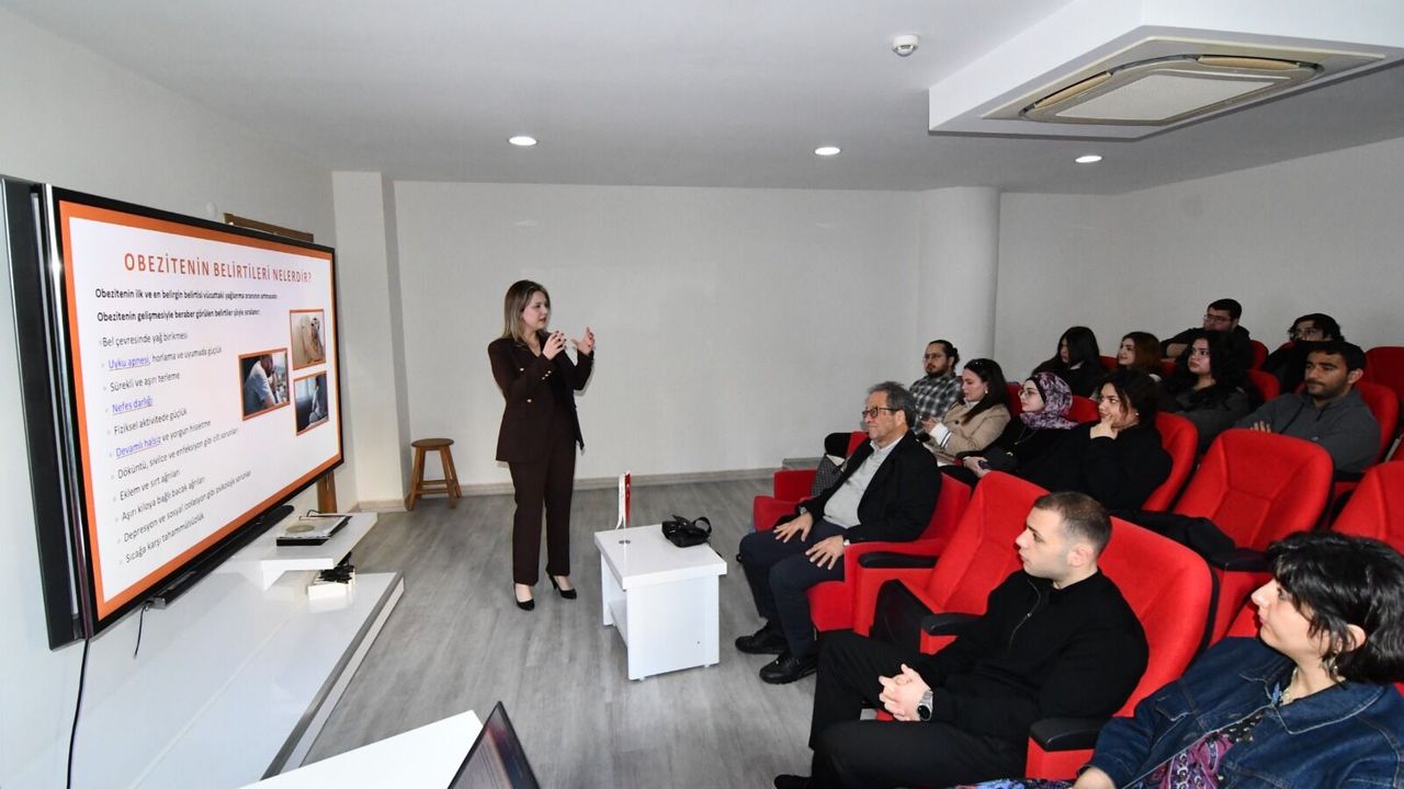 MERKEZ Kampüs Kırmızı Salon’da gerçekleştirilen etkinlikte Uzman Diyetisyen Ayşe Tuğçe Karagedik, dengeli beslenmenin önemi ve obezitenin sağlık üzerindeki etkileri hakkında katılımcılara kapsamlı bilgiler aktardı. Söyleşide, günlük yaşamda doğru beslenme alışkanlıklarının nasıl geliştirilebileceği, obezite riskini artıran faktörler ve sağlıklı bir yaşam için dikkat edilmesi gereken temel noktalar ele alındı.