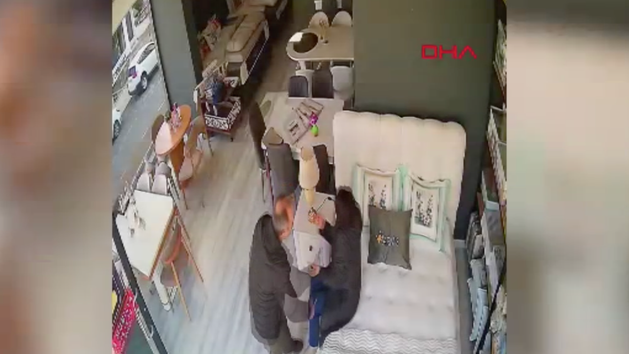 İddiaya göre, öğretmen olduğu belirtilen F.D., dükkanda çalışan eşi Z.D.’nin yanına gitti. İkili arasında tartışma çıktı. Bu sırada F.D., eşi Z.D.’yi darbetti. O anlara ilişkin, iş yerinin güvenlik kamerasına yansıyan görüntüleri ortaya çıktı. İş yeri sahibi F.D. hakkında dükkana zarar verdiği iddiasıyla şikayetçi oldu. Çiftin ise birbiri hakkında şikayetinin bulunmadığı belirtildi.