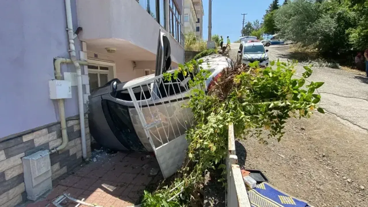 A.K.'nin yokuşta kontrolünü yitirdiği otomobil, apartmanın bahçesine girerek yan yattı. Kazada, otomobil sürücüsü A.K. ile yanındaki S.E., H.Y., F.D. ve Z.H. yaralandı. Çevredekilerin ihbarıyla kaza yerine sağlık, polis ve itfaiye ekipleri sevk edildi. Yaralılar, ambulanslarla hastaneye kaldırıldı. Yaralıların durumlarının iyi olduğu öğrenildi. Kazaya ilişkin soruşturma başlatıldı.