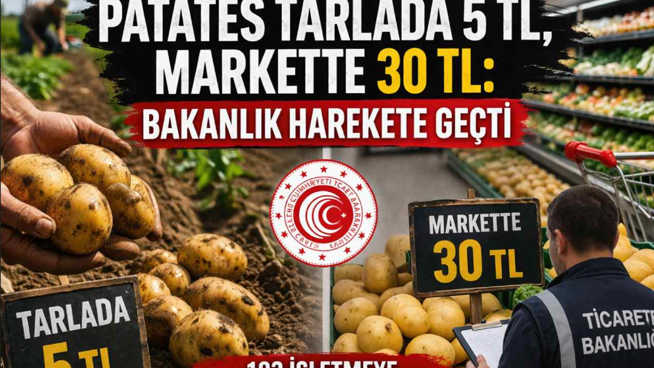 Ticaret Bakanlığı’nın günlerdir sürdürdüğü denetimler, sebze ve meyve fiyatlarındaki ciddi farkı bir kez daha gözler önüne serdi. Özellikle patates fiyatı, üretici ile market arasındaki farkın en çarpıcı örneklerinden biri oldu.