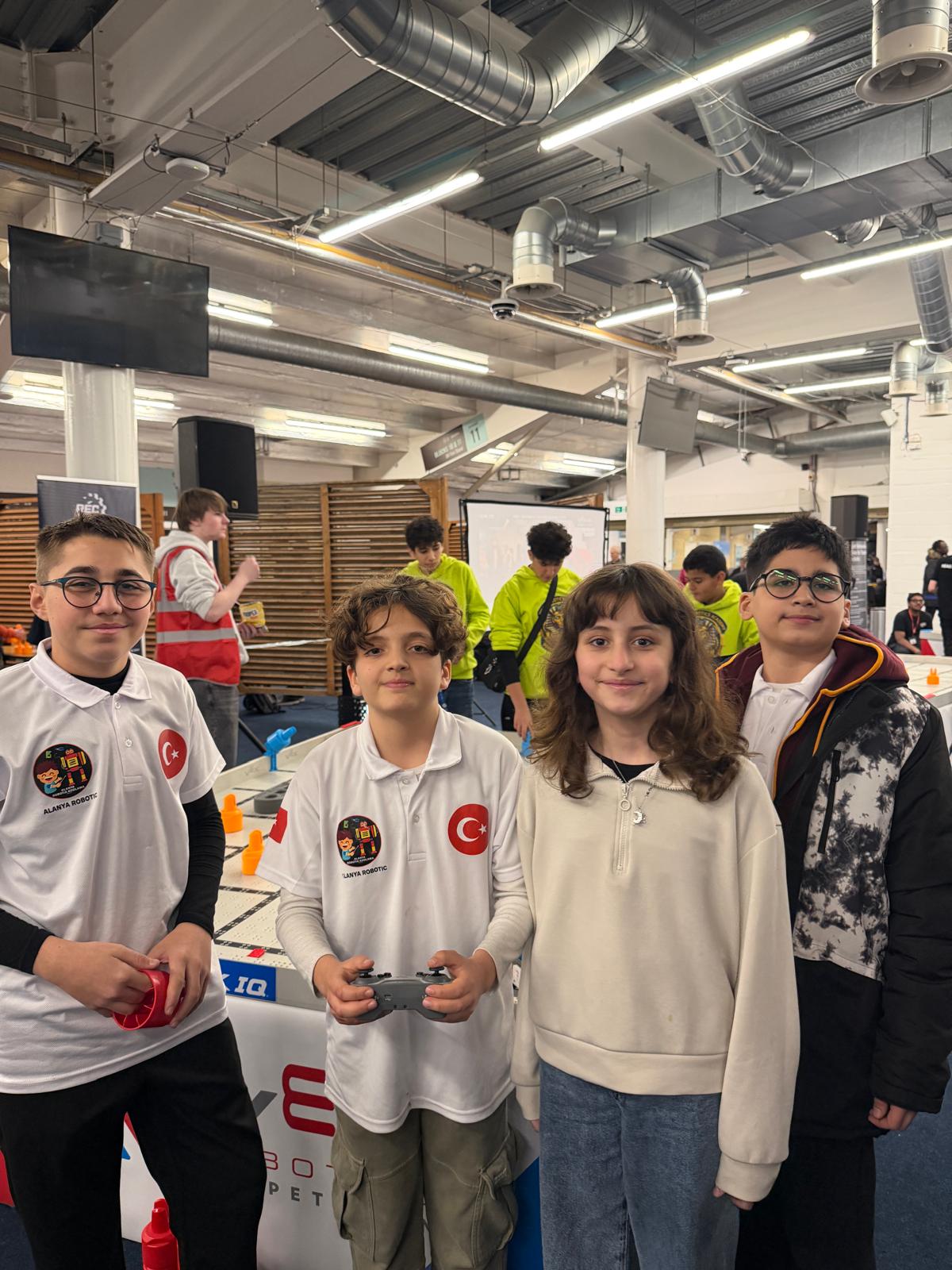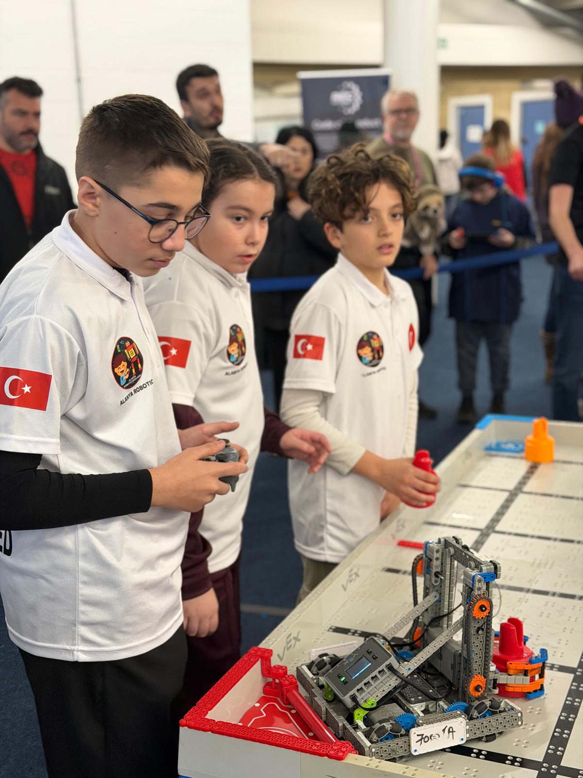 İNGİLTERE'NİN başkenti Londra’da düzenlenen ve dünya genelinden 60 seçkin ekibin katıldığı VEX IQ Robotics Yarışması’nda Türkiye’yi temsil eden Alanya Robotik Kodlama Takımı, önemli bir başarıya imza attı. Uluslararası arenada sergilediği performansla dikkat çeken ekip, genel klasmanda 5’inci olmayı başardı. Londra’daki yarışmalar sırasında Küresel Gazeteciler Konseyi (KGK) Genel Başkanı Mehmet Ali Dim de Alanyalı öğrencileri ziyaret ederek başarılarından dolayı tebrik etti. Dim, yarışma sonrası Alanya Robotik Kodlama Takımı ile birlikte Türk bayrağı açarak başarı pozu verdi.