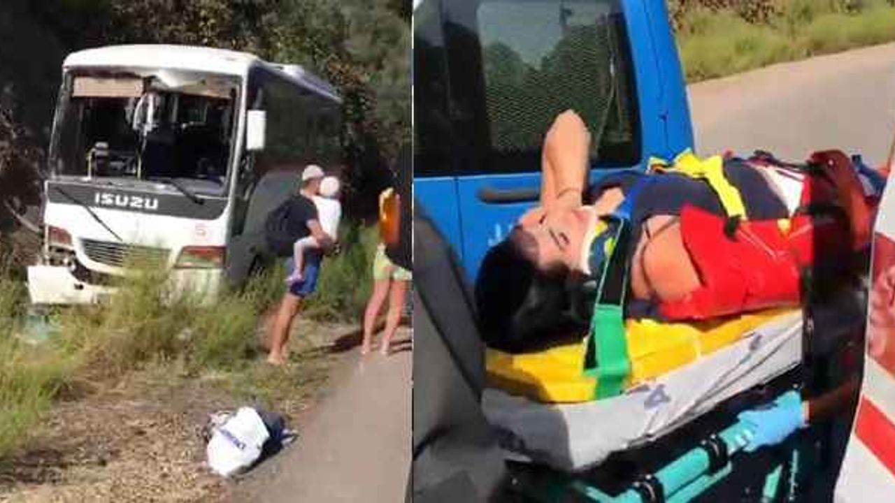 EDİNİLEN bilgiye göre kaza, Kemer-Kumluca karayolu Olympos mevkiinde öğle saatlerinde meydana geldi. Kemer’de otellerden aldığı turistleri taşıyan Şehmus Yalçın idaresindeki 07 KEB 12 plakalı midibüs, şoförün direksiyon hakimiyetini kaybetmesi sonucu devrildi. Kazada içerisinde 34 kişinin bulunduğu midibüsün sürücüsü Yalçın ile 3 Rus turist yaralandı. İhbar üzerine kaza yerine ambulans ve jandarma ekipleri sevk edildi. Yaralılar sağlık ekiplerinin ilk müdahalesinin ardından çevredeki hastanelere kaldırıldı. Yaralıların sağlık durumlarının iyi olduğu öğrenildi.