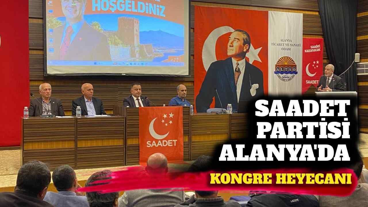 Saadet Partisi Alanya İlçe Teşkilatı’nın 8. Olağan Kongresi bugün gerçekleştiriliyor. Alanya Ticaret ve Sanayi Odası (ALTSO) Konferans Salonu’nda saat 10.00’da başlayan kongrede mevcut İlçe Başkanı Hüseyin Sarıca, tek aday olarak delegelerin karşısına çıktı. Tek listeyle gidilen kongrede, Sarıca’nın başkanlığındaki yönetim kurulu listesi de delegelerin onayına sunuldu. Kongrede birlik ve beraberlik mesajları verilirken, yeni döneme ilişkin hedefler de paylaşıldı.