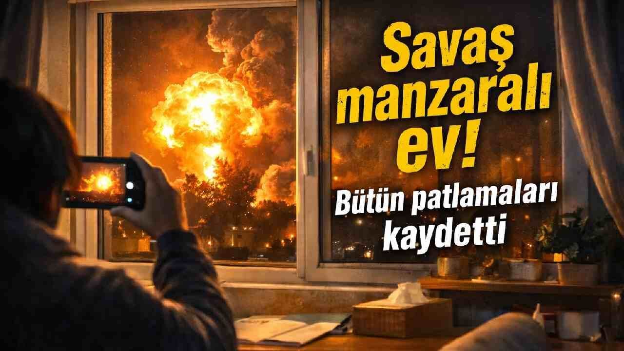 İran’ın başkenti Tahran’da gece saatlerinde meydana gelen ve Devrim Muhafızları Hava Kuvvetleri Komutanlığı yakınlarını hedef aldığı iddia edilen saldırı, bir vatandaşın cep telefonu kamerasına yansıdı. Evinde bulunan bir Tahran sakini, penceresinden gördüğü patlamaları saniye saniye kaydetti. Görüntülerde, ufuk hattında meydana gelen patlamanın ardından gökyüzünün bir anda gündüz gibi aydınlandığı ve kısa süre içinde devasa alev toplarının yükseldiği görülüyor. Patlama seslerinin şehrin farklı noktalarından da duyulduğu bildirildi.